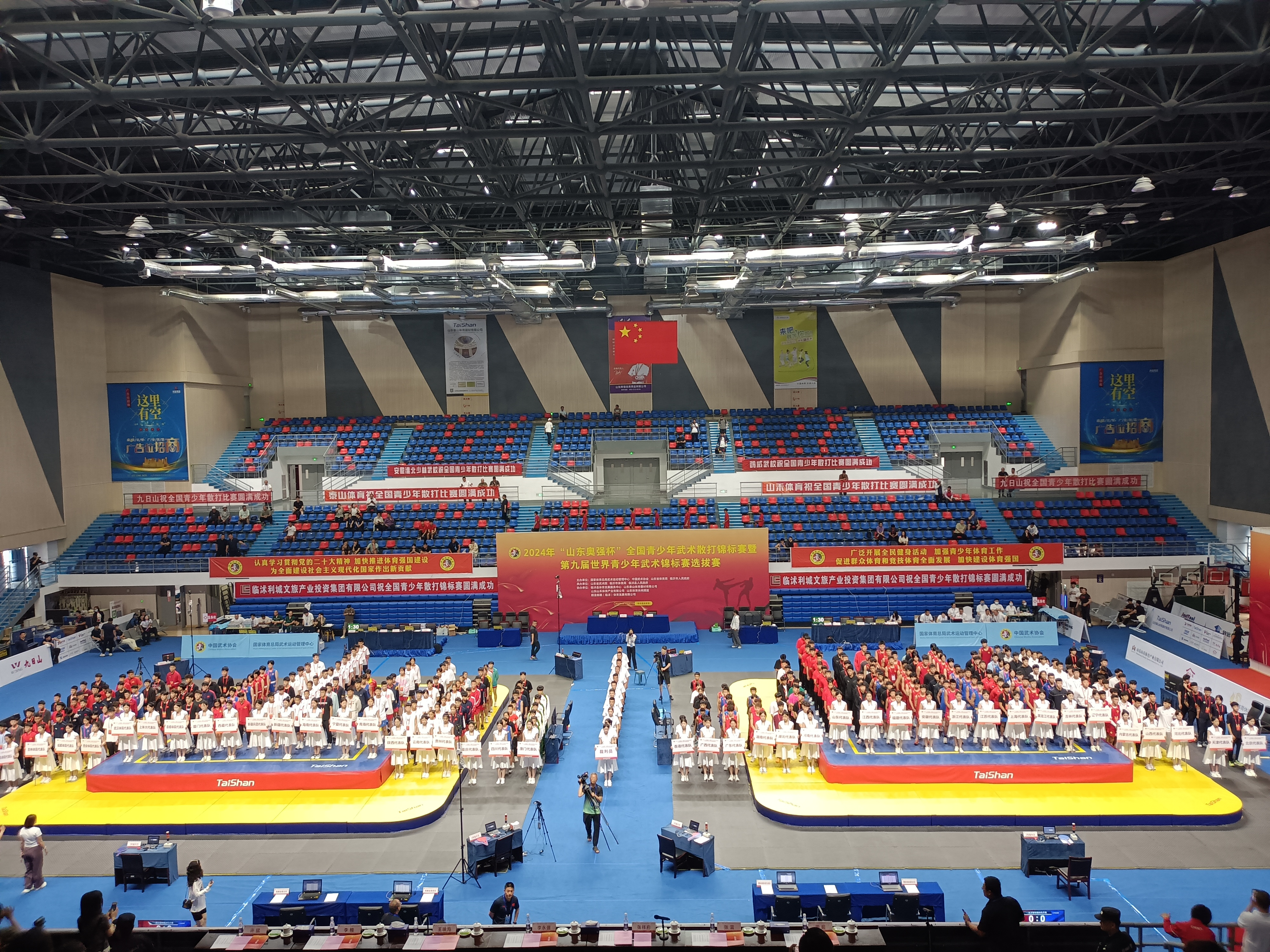 【概要描述】6月14日,2024年全国青少年武术散打锦标赛暨第九届世界青少年武术锦标赛选拔赛,在山东省临沂临沐开赛,乐鱼(中国)leyu体育是本次大赛的器材供应商与服务商。本次赛事是全国最高水平的青少年武术散打比赛,也是山东近年来承办的规模最大的武术赛事,共将产生20枚金牌,共有来自全国42支队伍的800余名运动员前来角逐。其中,中国香港和中国澳门队是首次参赛。 国家体育总局武术运动管理中心副主任李永强,临沂市副市长王映海
