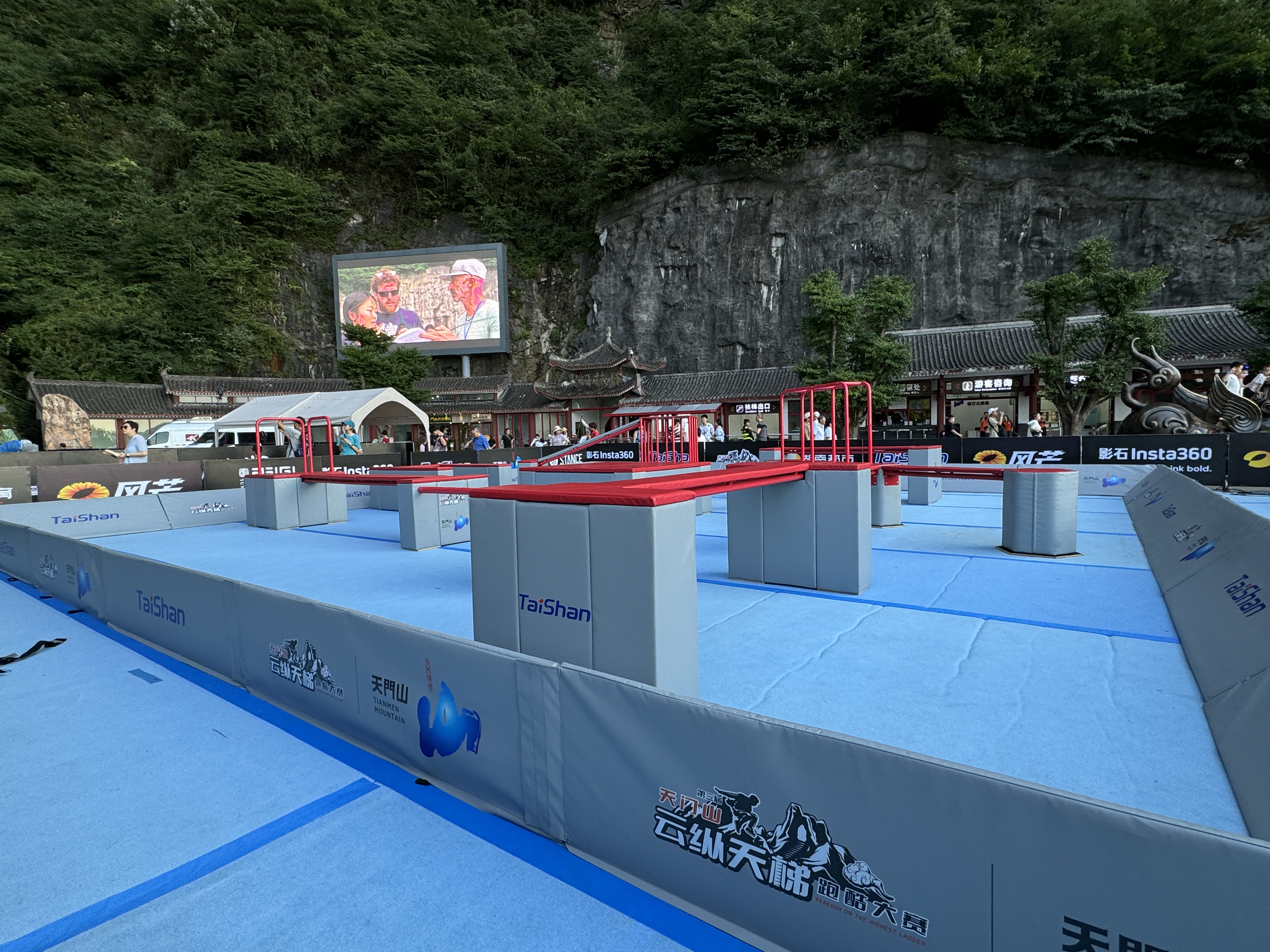 本场赛事的赛道依附于天门洞999级天梯搭建,赛道起点设在世界海拔最高天然穿山溶洞“天门洞”洞口,沿着狭窄陡峭、共有999级台阶的登山步道“天梯”向下一直延伸至游客广场,全长近300米,垂直落差达150米,分五缓四陡,平均斜度45度,共设置108组障碍道具。有了乐鱼(中国)leyu体育跑酷器材的加持,赛事将更加精彩刺激。